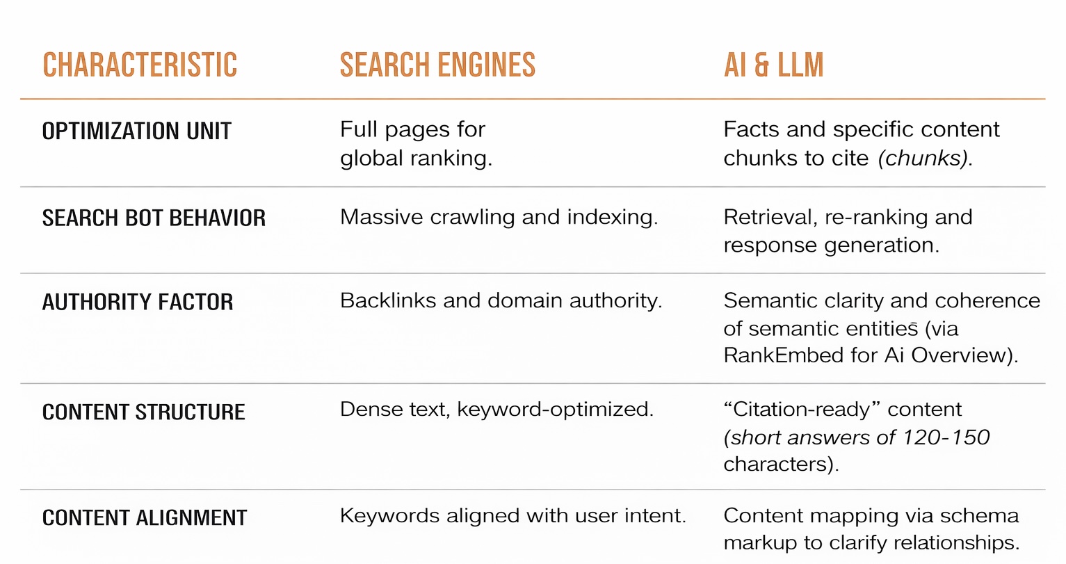 While content quality fundamentals remain the same (E-E-A-T, relevance), SEO and GEO tactics diverge to align with how AI systems interpret and generate answers.